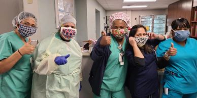 Brother David Kent and Sister Victoria Olson delivered 50 masks to Gillian from the Nurses Union outside of Palmetto General Hospital. The masks were made by Sister Victoria Olson, Sister Mary Soule and Lisa Horwitz from IATSE Local 500.